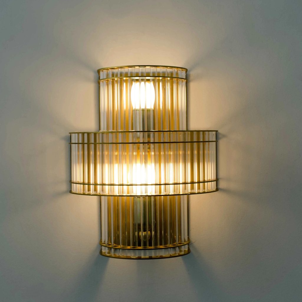El Aplique de pared vintage con tubos de cristal Barney es uno de esos modelos que elevan el espacio al instante. El latón combinado con el cristal crea una luz cálida y envolvente que transforma la pared en un punto focal. No ilumina sin más: decora incluso apagado.